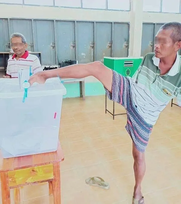 1ภาพล้านคำบรรยาย “ผู้พิการ” ใช้เท้าคีบไปใช้สิทธิเลือกตั้ง
