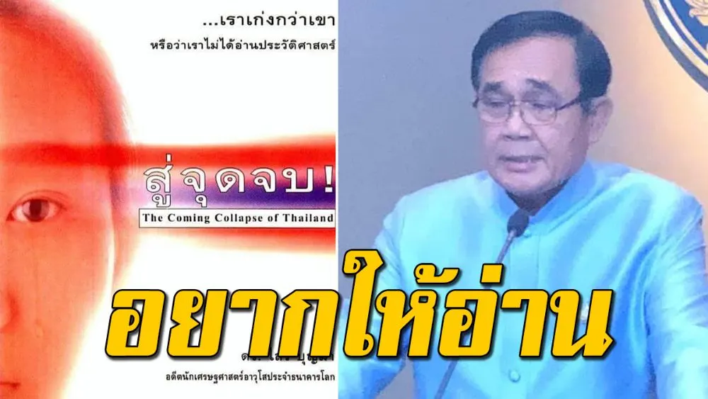 พล.อ.ประยุทธ์ จันทร์โอชา นายกรัฐมนตรี และหัวหน้าคสช. กล่าวหลังการประชุมคสช.และครม.ว่า อยากให้ไปอ่านหนังสือเล่มหนึ่ง ที่ดร.ไสว บุญมา อดีตนักเศรษฐศาสตร์อาวุโส ประจำธนาคารโลก เขียนไว้ ชื่อ “สู่จุดจบ!The coming collapse of Thailand”