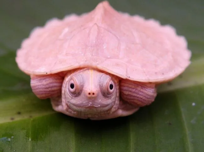 6 เต่าหน้าตาแปลกๆที่มีสีขาวอมชมพูตัวนี้ เป็นสายพันธุ์หายาก และจริงๆแล้วมันคือเต่าเผือก