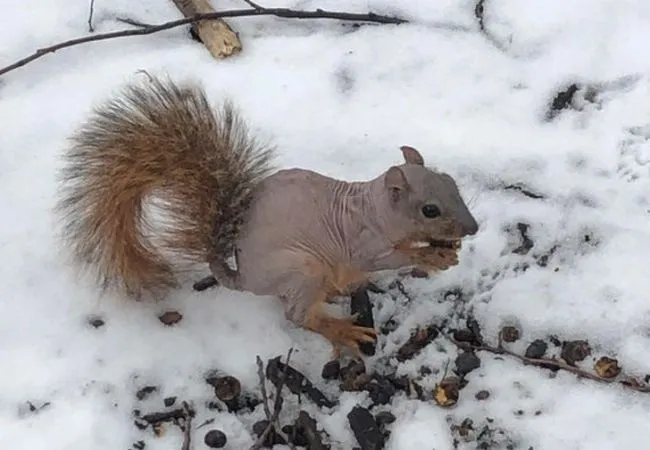 7 ไม่ใช่กระรอกทุกตัวจะมีขนปุกปุย กระรอกตัวนี้ไม่มีขน แต่มันก็ดูน่ารักไปอีกแบบ ไม่แพ้กระรอกทั่วไป เพียงแต่มันน่าสงสารที่ต้องอยู่ในสภาพอากาศที่เหน็บหนาว