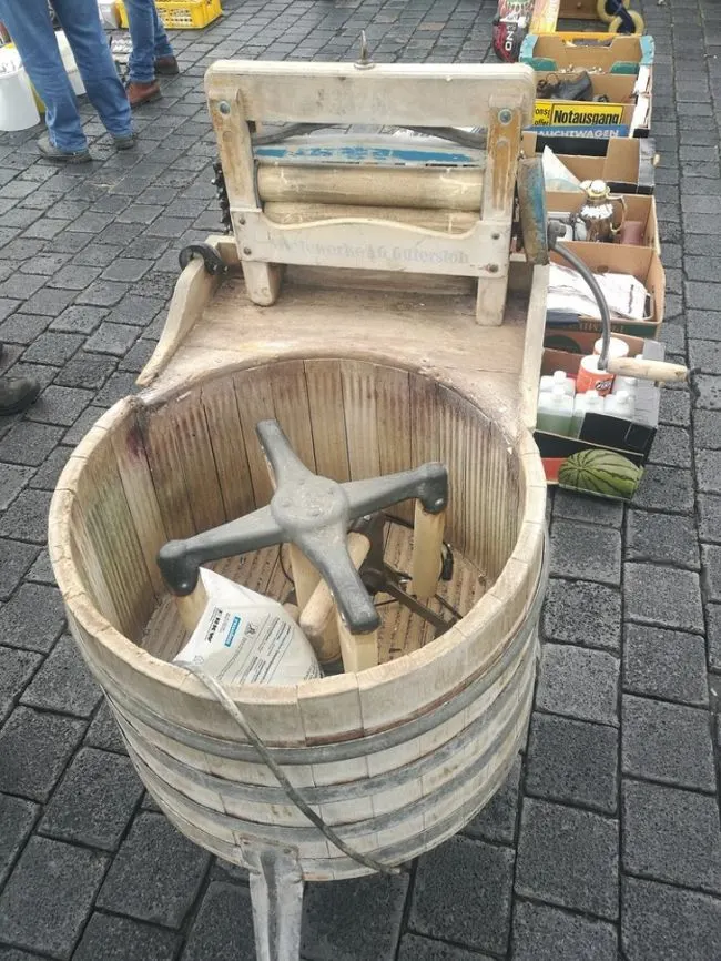 9 นี่คือลักษณะของเครื่องซักผ้าตั้งแต่ต้นศตวรรษที่ 20 มีถั่งปั่นเหมือนกับที่เราใช้ทุกวันนี้ เพียงแค่ต่างกันตรงที่ผลิตด้วยไม้ และน่าจะใช้งานยากกว่าเครื่องซักผ้ายุคใหม่