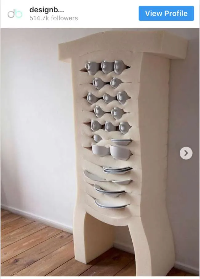 9 ตู้เก็บจานชามแบบนี้ไม่ต้องเปิดตู้ให้เสียเวลา เพราะนี่คือตู้แบบอ่อนที่ทำจากโฟมยางสำหรับเก็บเครื่องครัวโดบยเฉพาะ