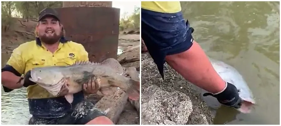 ดูคลิปเหตุการณ์ได้ที่นี่ https://www.dailymail.co.uk/news/article-6853947/Man-picks-giant-Murray-cod-HANDS-carries-healthier-river.html#v-9152711554555428831