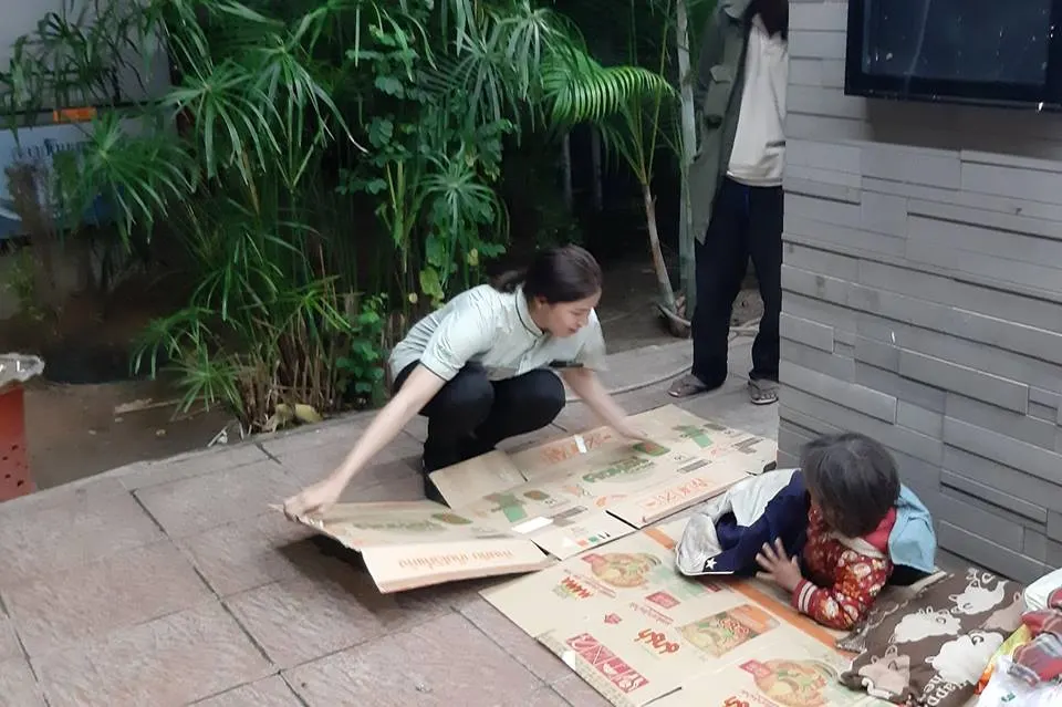 ป้าเหนื่อยแล้ว เดี๋ยวหนูช่วย - "สาวเซเว่น" ปูกระดาษลังให้คนแก่นอน พักร่างจากเดินทางไกล