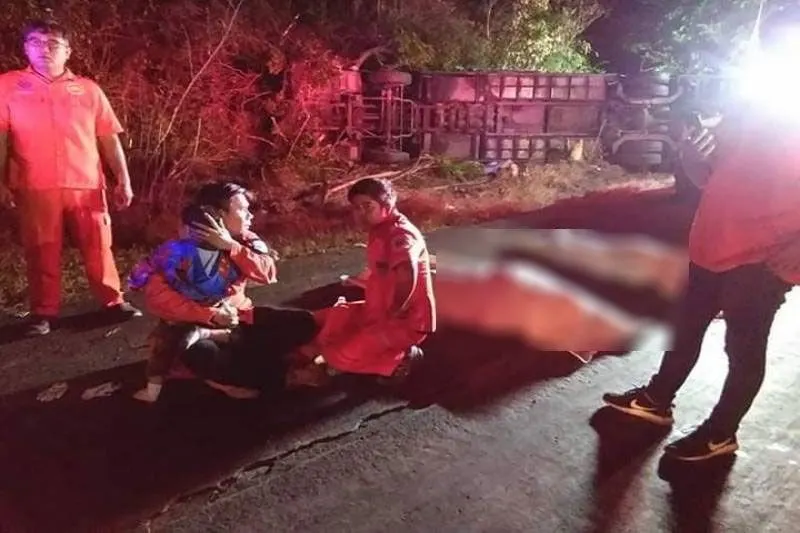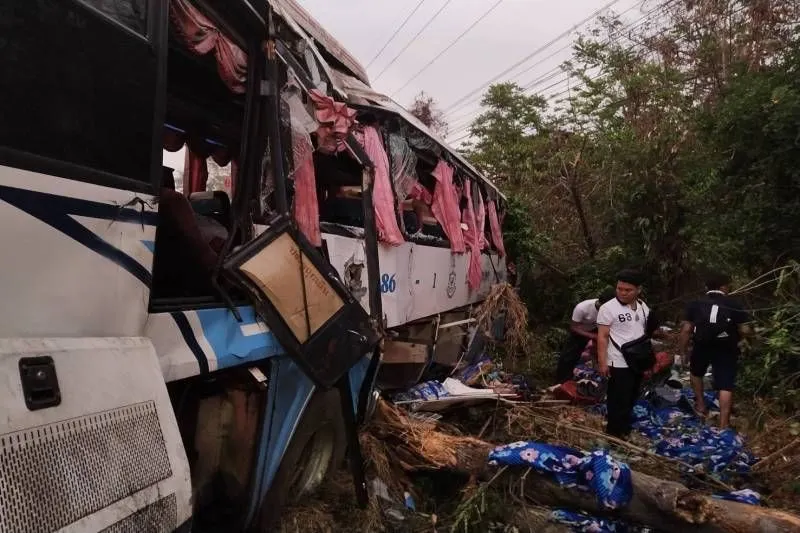 จากการสอบสวนทราบว่า รถบัสรับผู้โดยสารมาจาก จ.นครพนม รวม 44 คน วิ่งมาด้วยความเร็วสูง มุ่งหน้าปลายทางกรุงเทพฯ มาถึงที่เกิดเหตุมีฝนตกโปรยปรายทำให้ผิวจราจรลื่น จู่ๆรถก็เสียหลักพุ่งลงข้างทางชนต้นไม้ ทำให้มีเสียชีวิตและบาดเจ็บจำนวนมาก