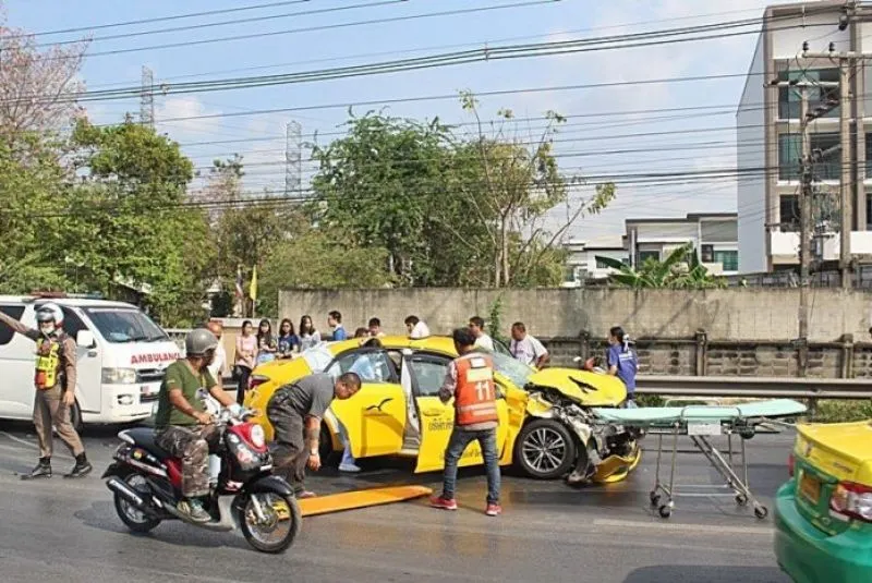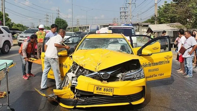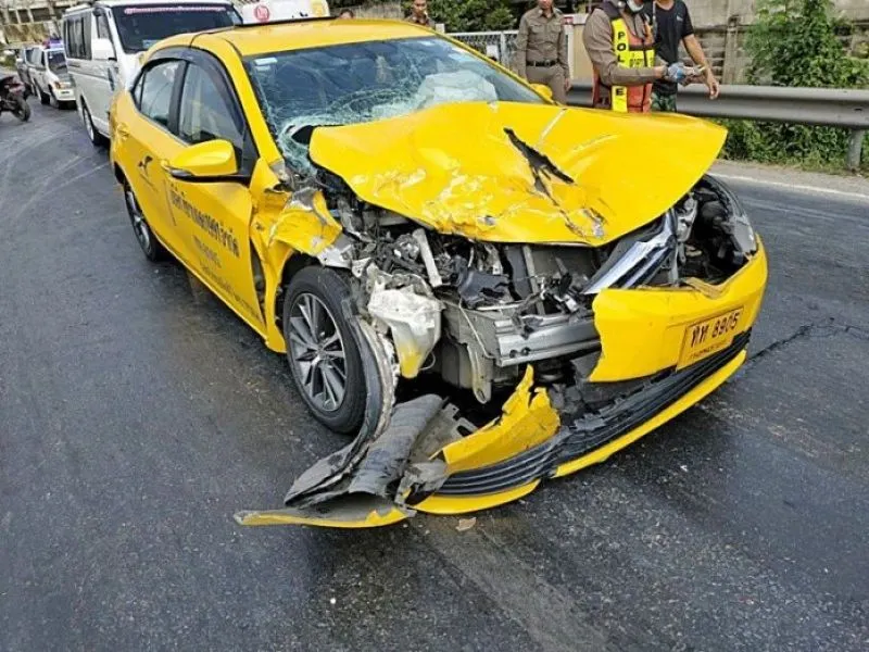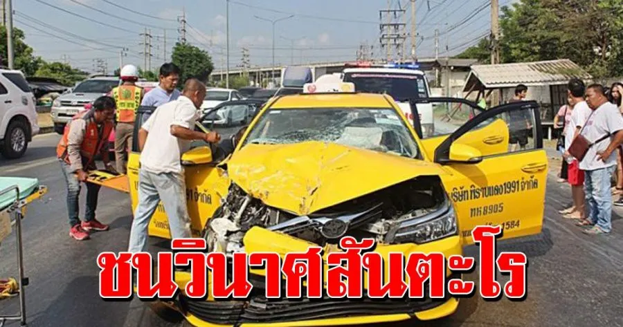 ชนวินาศสันตะโร แท๊กซี่เบรกไม่ทัน พุ่งชน 4 คันรวด ผู้โดยสารเจ็บ เผยสาเหตุ