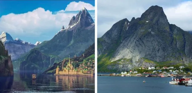 ที่นี้นำมาจากเมืองชนบทของนอร์เวย์และฟยอร์ดอันงดงาม คุณสามารถเห็นความคล้ายคลึงกันในทิวทัศน์ธรรมชาติโบสถ์ไม้ สถาปัตยกรรมอิฐรูป แบบสิ่งทอและแม้แต่สัตว์ เนื่องจากเรื่องราวดังกล่าวได้รับแรงบันดาลใจจาก The Snow Queen ผู้เขียนชาวเดนมาร์ก Hans Christian Andersen ดังนั้นจึงเป็นเรื่องธรรมดาที่ Michael Giaimo ผู้กำกับศิลป์ของ Frozen ได้เดินทางไปสแกนดิเนเวียเพื่อค้นหาแรงบันดาลใจ