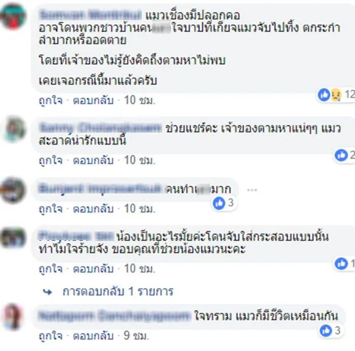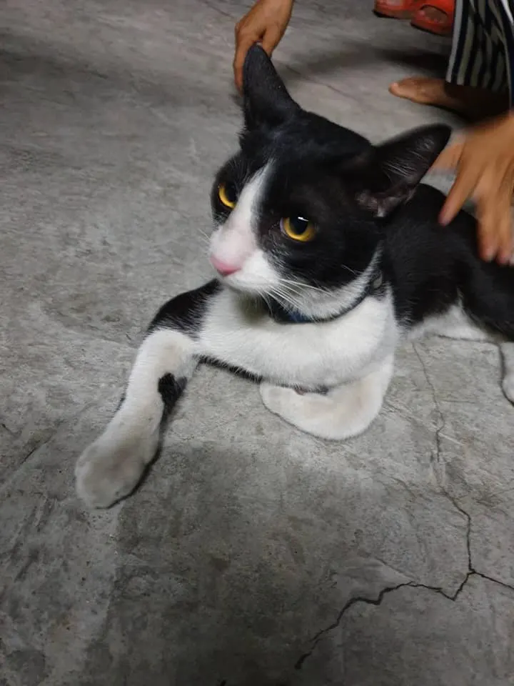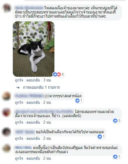 "ตามหาเจ้าของค่ะ มีคนใจร้ายจับแมวมัดใส่กระสอบมาโยนทิ้งแถวโรงงานพัทยาฟู๊ด ซอยบางปลา สมุทรสาคร แมวมีปลอกคอเชื่องมากค่ะ ตอนนี้แมวอยู่กับเราสามารถติดต่อได้ที่เบอร์ 0861356868 ค่ะ"