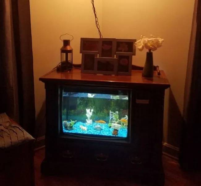 ทีวีเก่าๆ สุดคลาสสิค เราจะทิ้งก็เสียดายนำมาทำตู้ปลามีประโยชน์กว่าเยอะ แถมยังเป็นชั้นวางของได้อีกต่างหาก