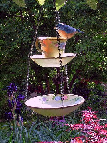 แก้วกับจานเก่าๆ เรานำมาใช้ประดับสวนได้ และยังมีประโยชน์แก่นกอีกด้วยเพียงแค่แขวนเอาไว้พวกนกก็จะมากินน้ำในบ้านคุณได้ ได้ให้ทานแก่สัตว์ด้วย แต่อย่าลืมเปลี่ยนน้ำด้วย จะได้ไม่มีลูกน้ำนะ
