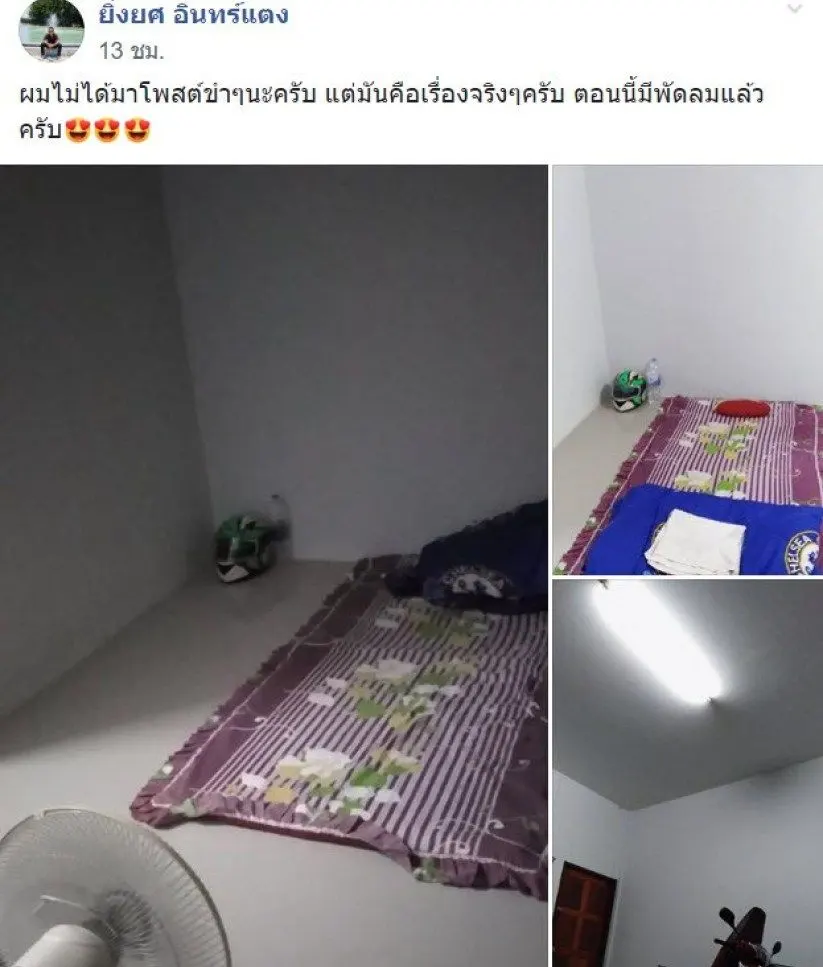 โดยโพสต์ได้ระบุว่า…"ผมไม่ได้มาโพสต์ขำๆนะครับ แต่มันคือเรื่องจริงๆ ครับ ตอนนี้มีพัดลมแล้วครับ"