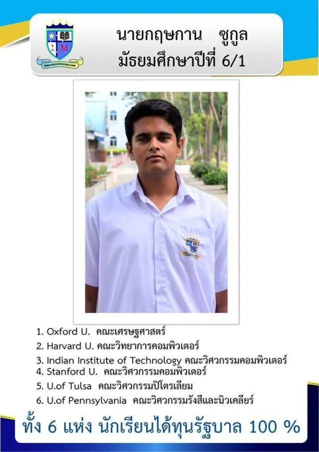 นักเรียนไทยยอดอัจฉริยะ “นายกฤษกาน ซูกู” ได้ทุนเรียนฟรีมหาวิทยาลัยชั้นนำระดับโลก Oxford Harvard และ Stanford