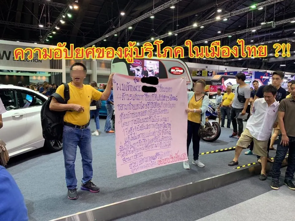ล่าสุดรถค่ายดัง ราคาแพง ( ขออนุญาตไม่บอกชื่อยี่ห้อ ) มีผู้เสียหายจากการซื้อรถ ชูป้ายประมาณว่ารถซื้อมาแพง