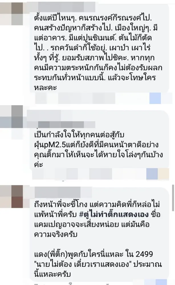 ติ๊ก เจษฎาภรณ์ ดาราผู้รักธรรมชาติ ที่ถึงกับทนไม่ไหว ออกมาโพสต์ข้อความผ่านเฟซบุ๊ก ภาพใส่หน้ากาก พร้อมโชว์เครื่องวัดค่า PM 2.5 ว่า “เราจะอยู่กันแบบนี้จริง ๆ เหรอ ?? ไหม้ทุกที่ เผาทุกวัน #เชียงใหม่ #แม่ฮ่องสอน #pm 25 #วิกฤตฝุ่นเชียงใหม่ #ฝุ่นเชียงใหม่”