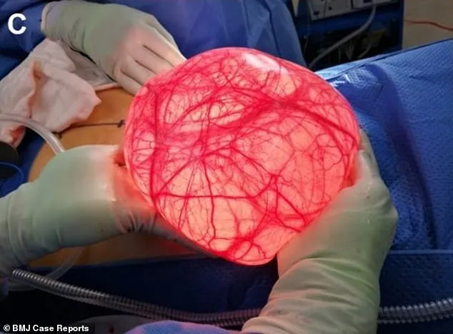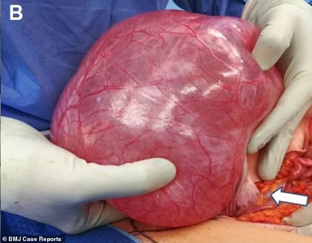 มีรายงานว่า แพทย์ได้ทำการตรวจสอบและค้นพบว่าผู้ป่วยหญิงรายนี้มีบางสิ่งเติบโตจนมีขนาดใหญ่มากจนเกือบเต็มท้องของเธอ และสาเหตุของอาการป่วยก็คือถุงน้ำรังไข่ขนาดใหญ่ที่อักแน่นอยู่ภายในท้องของเธออย่างน่าตกใจ