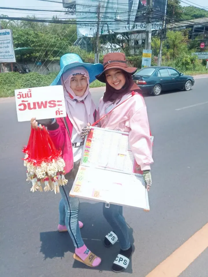 เจออีก แม่ค้าขายพวงมาลัยสุดสวย ที่ แยกวนารมย์ จ.อุบลราชธานี ที่ชาวเน็ตปลื้มมากๆส่งรูปมาการันตีว่าเธอไม่ได้แค่มาจัดอีเว้นต์ถ่ายรูปสวยๆ แต่เธอขายพวงมาลัยจริงๆ เคยแวะซื้อจริงๆ หลายๆคนโชว์รูปที่ถ่ายกับเธออีกด้วย ว่าแล้ว เราไปชมภาพกันเลย