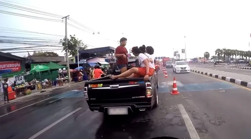 ตร.ไฟเขียวนั่งหลังรถกระบะเล่นสงกรานต์ได้