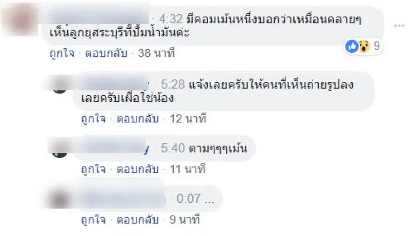 ล่าสุดในเฟสบุ๊กรายหนึ่งเข้าไปคอมเม้นท์ในเพจข่าวอีจัน ว่า มีคอมเม้นหนึ่งบอกว่าเหมื่อนคลายๆเห็นลูกยุสระบุรีที่ปั้มน้ำมันค่ะ ซึ่งก็มีคนมาตอบต่อท้ายว่า แจ้งเลยครับให้คนที่เห็นถ่ายรูปลงเลยครับเผื่อใช่น้อง