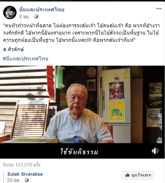 >> จากสุลักษณ์ ศิวรักษ์ หรือ ส.ศิวรักษ์ ปัญญาชนสยาม ได้กล่าวถึงพรรค อนาคตใหม่ หลังถูกกระแสโจมตีอย่างหนัก