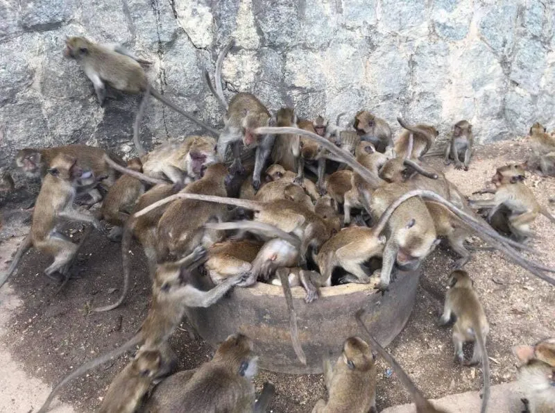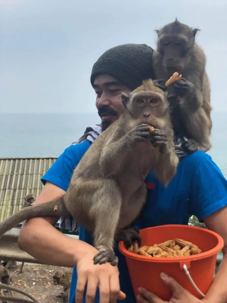 โดยตนได้ประสานความร่วมมือกับ พี่ไก่และพี่พร แม่ค้าขายอาหารลิงบนวัดเขาตะเกียบ เนื่องจากในช่วงฤดูแล้ง พบว่าลิงจะขาดแคลนอาหารและน้ำดื่ม ปรากฏว่ามีผู้ร่วมบริจาคเป็นจำนวนมาก ได้เงินเพื่อซื้ออาหารและน้ำให้ลิง สำหรับลิงฝูงนี้จะอาศัยอยู่บนยอดเขาตะเกียบและบริเวณโขดหินด้านล่างริมทะเล