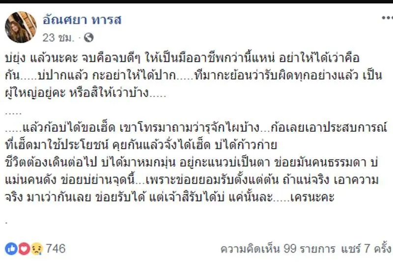 ภาพจาก เฟซบุ๊ก อัณศยา ทารส