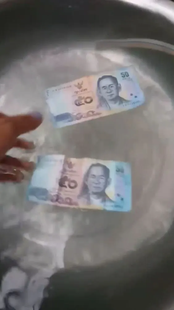 เหตุเกิดขึ้นแถวพระสมุทรเจดีย์ จ.สมุทรปราการ พร้อมกับได้โพสต์คลิปขณะตรวจสอบแบงค์ 50 ปลอมกับแบงค์ 50 จริง ซึ่งเมื่อใส่แบงค์ทั้งสองใบลงไปในน้ำพร้อมๆกัน ปรากฏว่าแบงค์ปลอมเปื่อยขาดยุ่ย แตกต่างกับแบงค์จริงอย่างสิ้นเชิง จึงได้ออกมาโพสต์เพื่อนเตือนภัยให้ระวังกันด้วย โดยเฉพาะพ่อค้าแม่ค้า