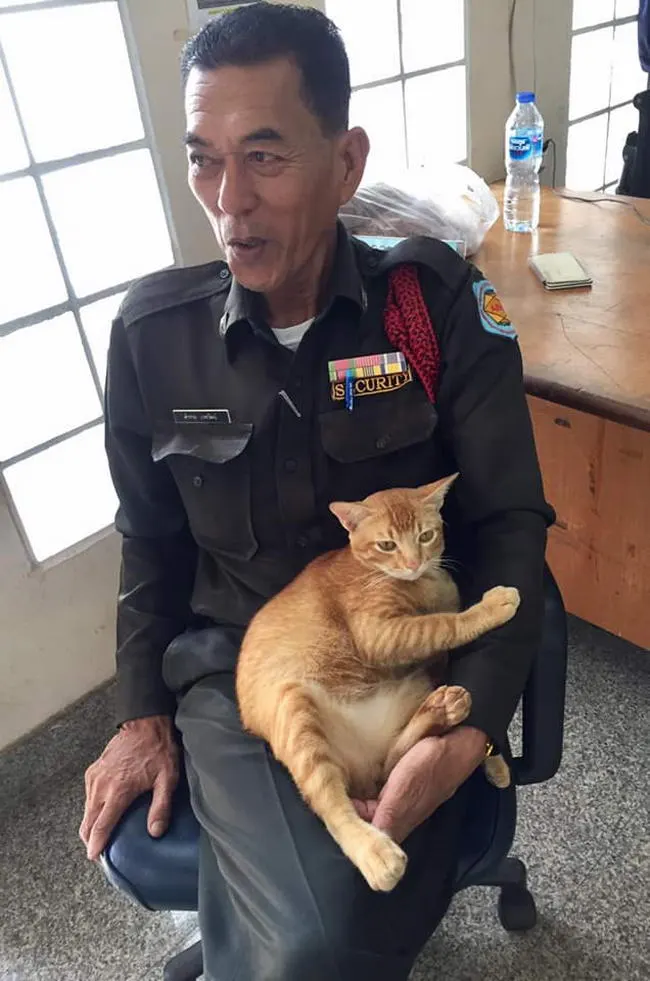 เมื่อเร็วๆนี้ ผู้ใช้เฟสบุ๊คชื่อว่า Pairy Cat ได้โพสต์ลงในกลุ่มทาสแมวว่า “น้องเหมียวตัวนี้ หลงทางมาที่ท่าเรือ ลุงยามดูแลเป็นอย่างดี ระยะเวลาเกือบเดือนแล้วค่ะ ดูสนิทสนมกันทีเดียว”