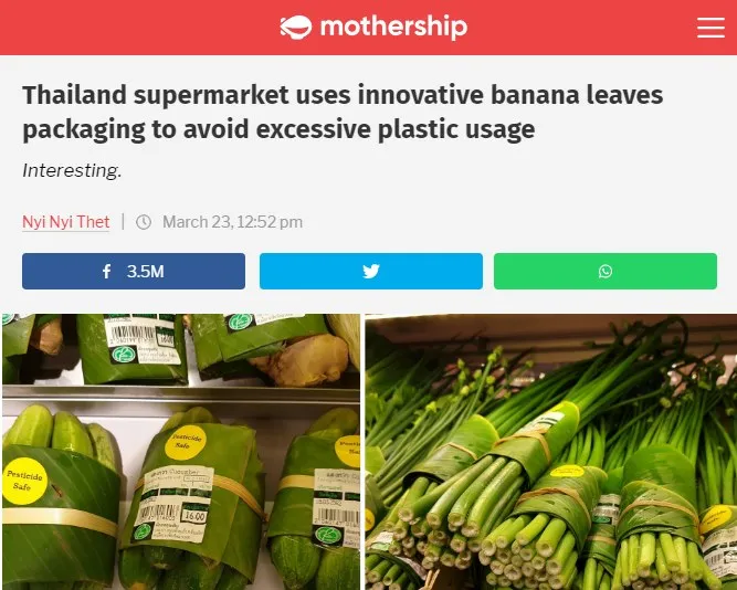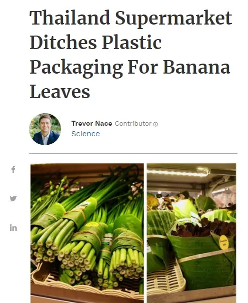เว็บไซต์ชื่อดัง อย่าง Forbes.com ก็ได้มีการเผยแพร่ข่าวชื่นชม ซูเปอร์มาร์เก็ตในประเทศไทย ที่ได้ใช้ใบตองมาห่อหุ้มสินค้าเพื่อลดการใช้ถุงพลาสติก