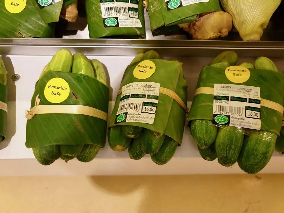 ภาพจากเฟซบุ๊ก Perfect Homes Chiangmai ได้โพสต์รูปภาพที่ทางริมปิงซูเปอร์มาร์เก็ตใช้ใบตองในการห่อผักสดไม่ว่าจะเป็นพริก ผักบุ้ง แตงกวา และมีชาวต่างชาติเข้ามาชื่นชมเป็นจำนวนมาก
