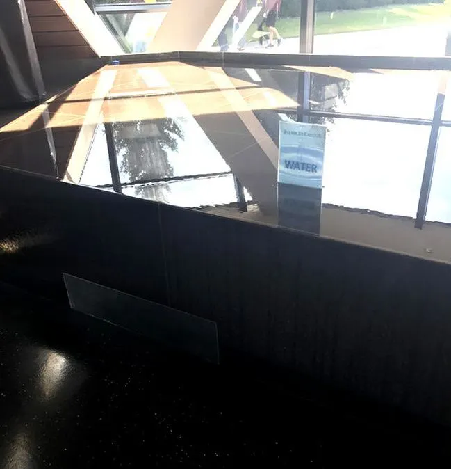 4 พื้นที่เงาวับตรงหน้านี้ คือสระน้ำเล็กๆ แต่ถ้าคนที่ไม่ทันสังเกตดีๆ พวกเราอาจคิดว่ามันคือโต๊ะ รึไม่ก็ม้านั่งก็ได้ เพราะแสงสะท้อนทำให้มันดูเหมือนโต๊ะหินขัด เขาจึงต้องเอาป้ายเตือนมาวางเอาไว้
