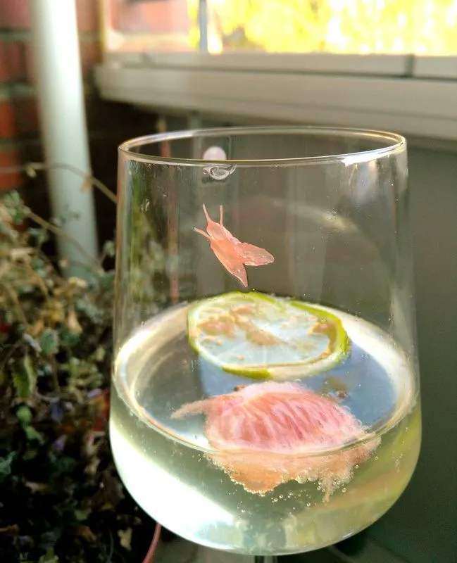 10 เมื่อเอาผลไม้มาในแก้วใส แก้วนี้จึงดูเหมือนกับมีแมลงวันเกาะอยู่