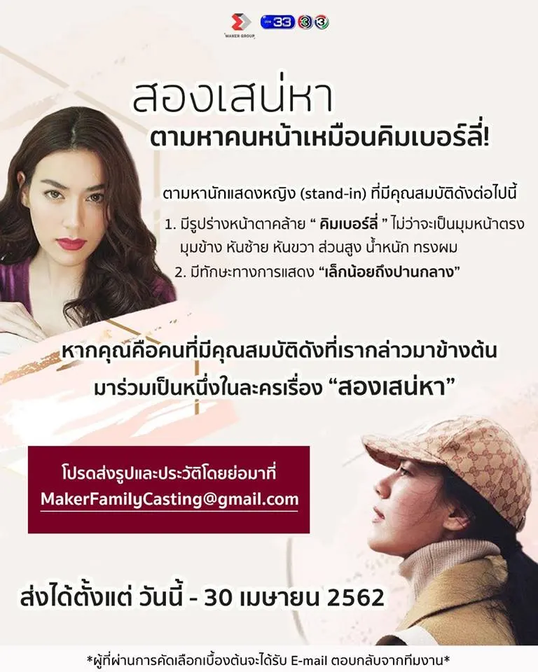 โซเชียลฯแห่ส่องกระจกเพียบ เมื่อ "สองเสน่หา" ประกาศตามหาคนหน้าคล้าย "คิมเบอร์ลี่" บอกเป็นโอกาสทองได้แจ้งเกิดชัดๆ