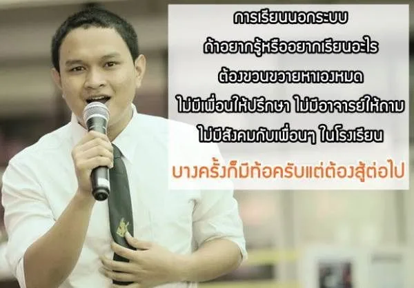 ตอนนั้นก็ไม่รู้ว่าเส้นทางการเรียนของตนเองจะเป็นอย่างไร ความรู้สึกของทางบ้านก็คงจะผิดหวังกับการเลือกเส้นทางนี้ของตนพอสมควร แต่การเรียนที่ กศน.นั้น