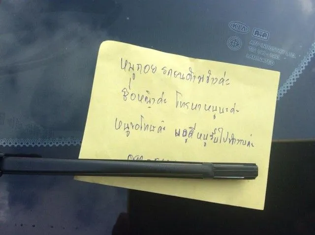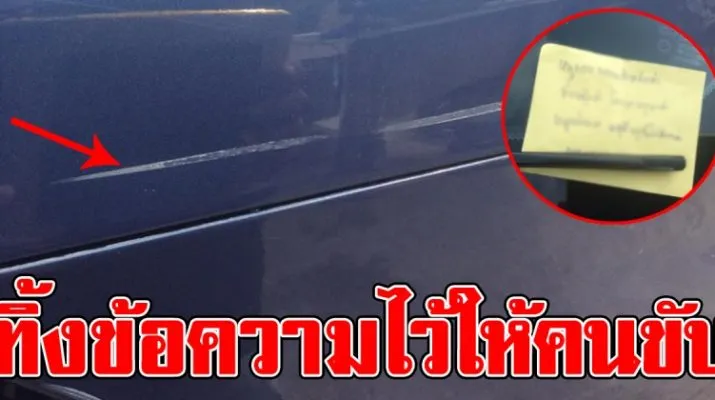 หนุ่มสุดงง กลับมาที่รถ เจอรอยขูดเป็นแนวยาว แถมมีกระดาษเขียนข้อความติดไว้