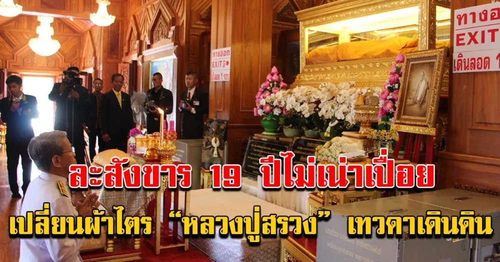 เทวดาเดินดิน ศิษย์สองแผ่นดินแน่นวัด ร่วมเปลี่ยนผ้าไตร “หลวงปู่สรวง” ละสังขาร 19 ปีไม่เน่าเปื่อย