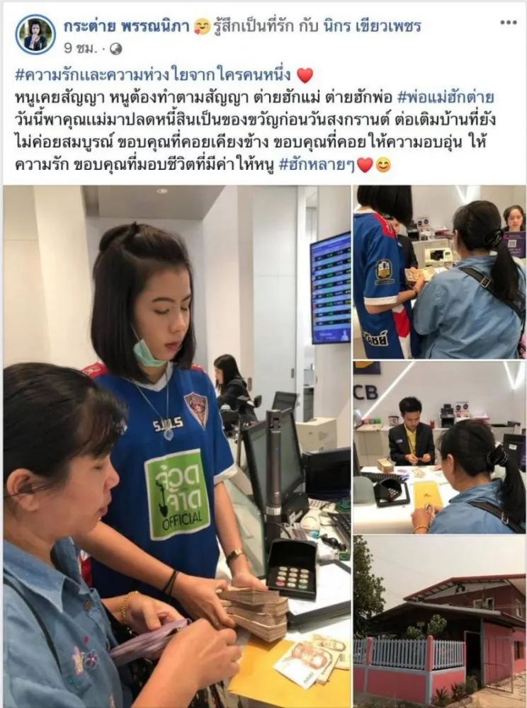หนูเคยสัญญา หนูต้องทำตามสัญญา ต่ายฮักแม่ ต่ายฮักพ่อ #พ่อแม่ฮักต่าย วันนี้พาคุณเเม่มาปลดหนี้สินเป็นของขวัญก่อนวันสงกรานต์ แถมยังทิ้งท้ายไว้อีกว่าตอนนี้กำลังต่อเติมบ้านที่ยังไม่ค่อยสมบูรณ์ ขอบคุณที่คอยเคียงข้าง ขอบคุณที่คอยให้ความอบอุ่น ให้ความรัก ขอบคุณที่มอบชีวิตที่มีค่าให้หนู #ฮักหลายๆ