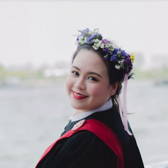 เธอยังเล่าอีกว่าที่ มหาลัยธรรมศาสตร์จะมีแต่ภาคเรียนปกติเท่านั้น อดทนหน่อย เหนื่อยหน่อย แต่เธอบอกว่าคุ้มค่า และนี่ก็คือเหตุผลที่เธอให้ลูกสวมชุดครุยในวันรับปริญญาด้วยกัน