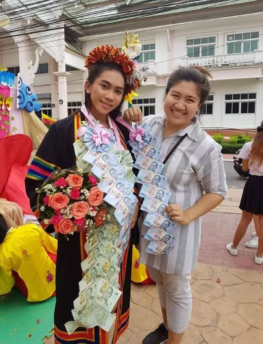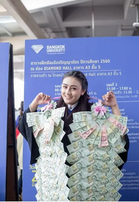วันสำเร็จการศึกษาหรือวันรับปริญญาจะเป็นอีกวันหนึ่งที่ทำให้เราและครอบครัวรู้สึกภาคภูมิใจ ในวันนี้จะมีบรรดาเพื่อนๆ พ่อแม่ และญาติพี่น้องต่างพากันมาร่วมแสดงความยินดีกับบัณฑิตใหม่ และก็มักจะมีของขวัญติดไม้ติดมือมาร่วมแสดงความยินดีด้วย สิ่งที่เราเห็นบ่อยๆ ก็อาจจะเป็นช่อดอกไม้สวยๆ พวงมาลัยดอกไม้ ช่วยให้งานดูมีสีสันสดใสมากยิ่งขึ้น แต่เดี๋ยวนี้มีมากกว่านั้นจ้า เพราะมีพวงมาลัยเงิน ที่ทำมาจากธนบัตร บอกเลยเป็นของขวัญที่ถูกใจบัณฑิตใหม่แน่นอน ใครอยากได้อย่าลืมกระซิบบอกเพื่อนๆ หรือญาติกันนะจ๊ะ