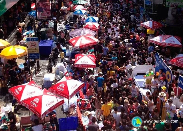 สีลม เป็นสถานที่เล่นน้ำยอดฮิตพอๆ กับถนนข้าวสารเลย ส่วนใหญ่จะเป็นคนไทยซะมากกว่า ผู้คนหนาแน่นมากถึงมากที่สุด ยิ่งเยอะยิ่งสนุกนี่นา สามารถเล่นน้ำได้ยั้น 4 ทุ่มเลยนะ เล่นตอนกลางคืนก็จะได้อีกบรรยากาศนึง เหมาะสำหรับคนที่ไม่ชอบอากาศร้อน แต่ก็ไม่ร้อนเท่าไรหรอก เพราะถนนเส้นนี้มีรางรถไฟฟ้า BTS คอยบังแดดให้เราด้วยจ้า ในปีนี้ ก็งดจัดงานเช่นเดียวกับถนนข้าวสาร