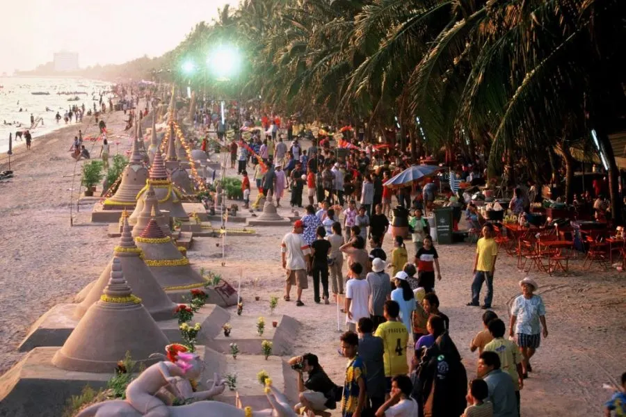 พัทยา จังหวัดชลบุรี เป็นเมืองแห่งการท่องเที่ยวที่สร้างชื่อเสียงให้ประเทศไทย เมืองพัทยานั้น เมื่อถึงช่วงเทศกาลสงกรานต์จะมีงานไหลพัทยา ซึ่งจัดขึ้นวันที่ 19 เมษยน ของทุกปี (หลังจากวันไหลบางแสน) มีผู้คนจำนวนมาเล่นน้ำสงกรานต์ในบรรยากาศชายทะเลกันอย่างมากมาย ทั้งชาวไทย ชาวต่างชาติ เล่นน้ำกันอย่างสนุกสนาน วันไหลพัทยานี้เป็นกิจกรรมที่ทำต่อๆ กันมา เหมือนกับบางแสนเลย ปัจจุบันถือว่าเป็นประเพณีเชื่อมโยงและเป็นส่วนหนึ่งของประเพณีสงกรานต์ มีการแห่ขบวนพระพุทธรูป ให้ประชาชนสรงน้ำพระตลอดชายหาด ประเพณีกองข้าว นาเกลือ การละเล่นต่างๆ เป็นอีกหนึ่งสถานที่ที่น่ามาเยือน