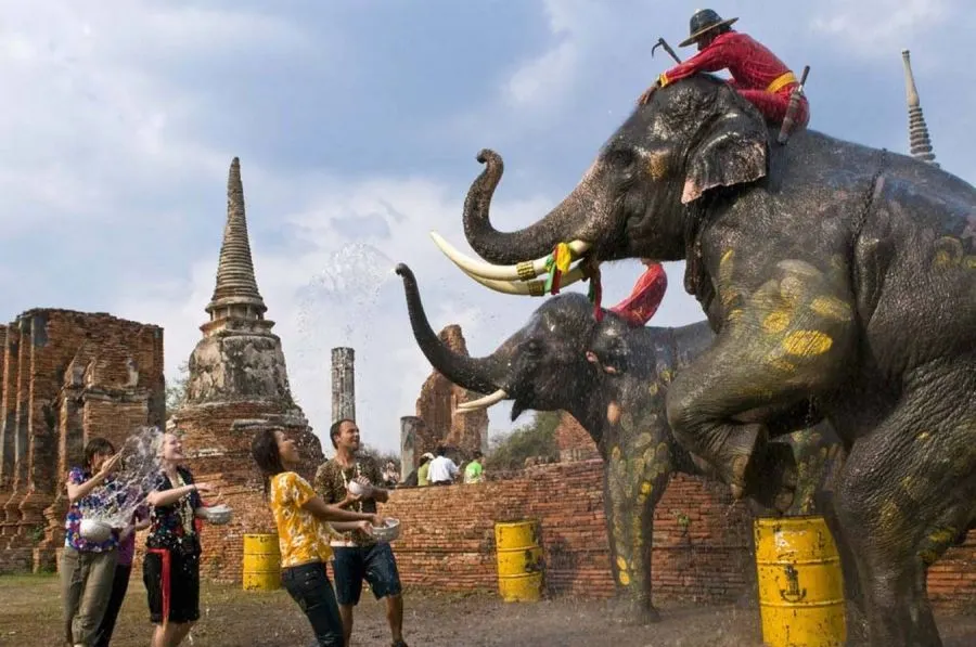 อยุธยา เมืองเก่าของเราแต่ก่อน เล่นน้ำสงกรานต์แบบย้อนยุค เก๋ไก๋แบบไทยๆ ไปกับการใส่ชุดไทยเล่นน้ำ ไฮไลท์ของงานเลยก็คือ การเล่นน้ำสงกรานต์กับช้าง สัตว์คู่บ้านคู่เมืองของคนไทย แถมเป็นสัตว์ประจำชาติไทยเราด้วยนะ มีกิจกรรมทำบุญตักบาตร การสรงน้ำพระ ก่อพระเจดีย์ทราย ซึ่งเป็นการสืบสานวัฒนธรรมอันดีงามให้คงอยู่ต่อไป นอกเล่นน้ำสงกรานต์แล้ว ยังมีตลาดย้อนยุค ที่ให้นักทองเที่ยวได้ใช้เงินเบี้ย (จำลองขึ้นมา) แลกซื้ออาหารไทยมาทาน ของคาว ของหวาน