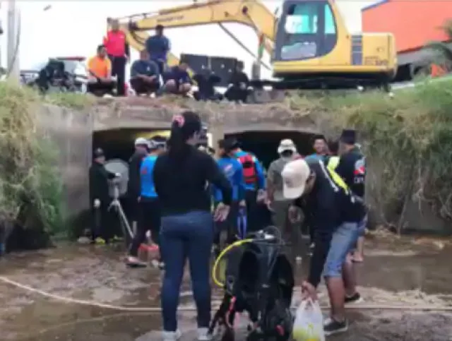 ระหว่างนั้นพบว่าภายในท่อมีกลิ่นเหม็น จึงได้นำกระสอบทรายมาสร้างทำนบกั้นน้ำบริเวณหน้าท่อ และเตรียมเครื่องสูบน้ำมาสูบน้ำออกจากท่อ เพื่อเข้าตรวจสอบว่ากลิ่นเหม็นเป็นกลิ่นของอะไร จะเป็นอย่างที่คิดไว้หรือไม่ ในการค้นหาเป็นไปด้วยความลำบาก เนื่องจากน้ำขุ่นและภายในท่อนั้นมืดมาก