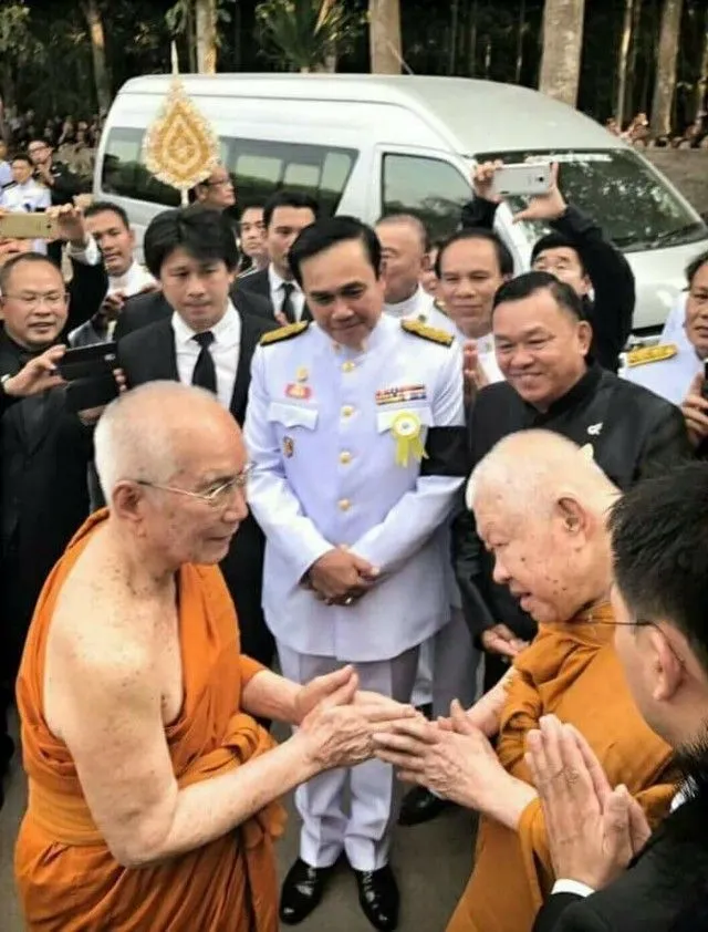 ทั้งนี้ สมเด็จพระอริยวงศาคตญาณ สมเด็จพระสังฆราช สกลมหาสังฆปริณายก ทรงเสด็จฯมาเป็นประธานพิธีบรรจุพระบรมสารีริกธาตุ อัฐิธาตุหลวงปู่มั่น ภูริทัตโต และยกฉัตรพระบรมสารีริกธาตุ ของพระมหาเจดีย์พิพิธภัณฑ์หลวงปู่มั่น ภูริทัตโต หลังจากเสร็จสิ้นพระพิธีแล้ว สมเด็จพระสังฆราชพร้อมด้วยพลเอกประยุทธ์ จันทร์โอชา นายกรัฐมนตรี ได้เข้ากราบนมัสการพระธรรมมงคลญาณ หรือ หลวงพ่อวิริยังค์ สิรินธโร พร้อมทั้งได้มีการพูดคุยกล่าวสนทนากันด้วย โดยเมื่อสมพระสังฆราช ทอดพระเนตร เห็นหลวงพ่อวิริยังค์ พระองค์ก็ยกพระหัตถ์ขึ้นไหว้ พร้อมตรัสว่า ท่าน97แล้ว ในขณะเดียวกันหลวงพ่อวิริยังค์ ก็ยิ้มพร้อมยกมือไหว้รับ แล้วพูดว่า อยู่เย็นๆ ส่วนพล.อ.ประยุทธ์ ซึ่งอยู่ในเหตุการณ์ด้วย ก็ยกมือไหว้ทั้งสมเด็จพระสังฆราชและหลวงพ่อวิริยังค์