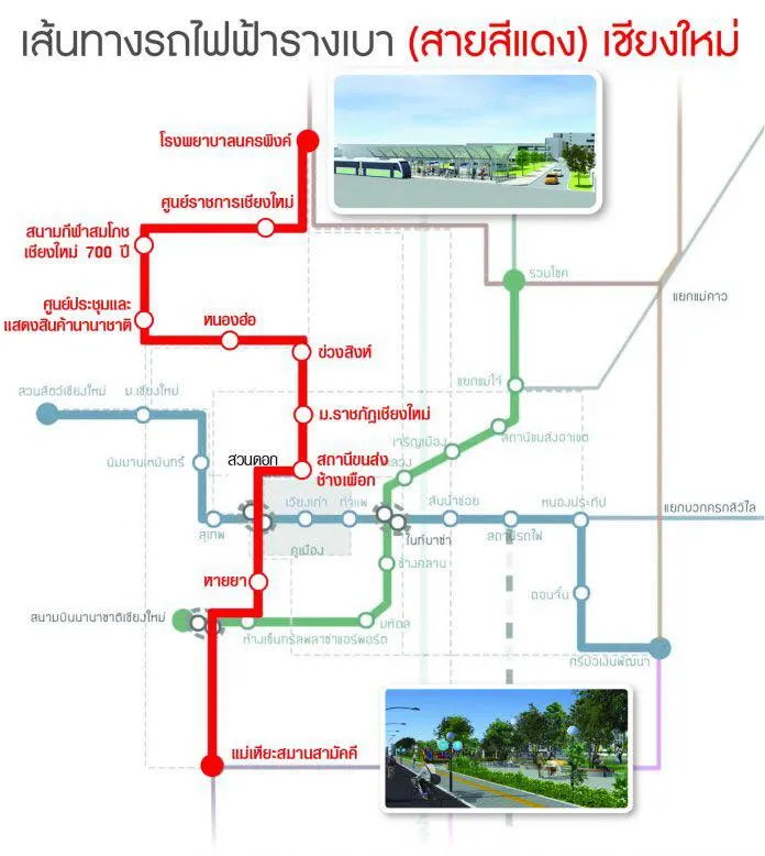 “รถไฟฟ้ารางเบาเชียงใหม่” มีทั้งหมด 3 สาย ระยะทางรวม 36 กม.