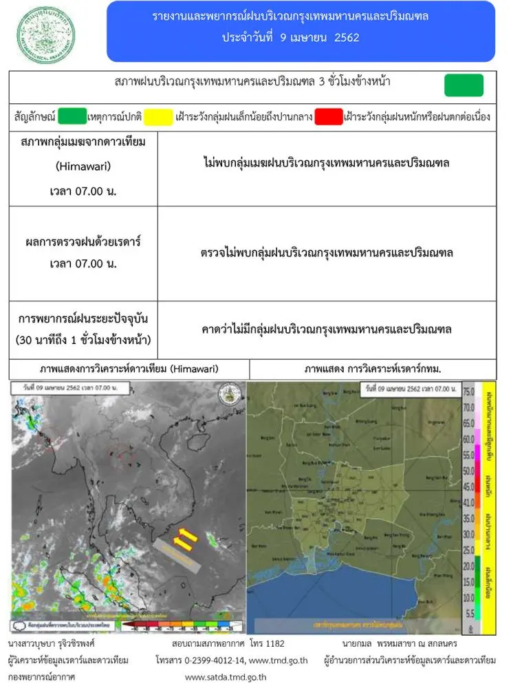 วันที่9เม.ย.62 กรมอุตุฯเผย พยากรณ์อากาศ 24 ชั่วโมงข้างหน้า ประเทศไทยตอนบนมีอากาศร้อนโดยทั่วไปกับมีอากาศร้อนจัดเป็นบางพื้นที่ โดยมีฝนฟ้าคะนองบางแห่งในภาคตะวันออกเฉียงเหนือตอนล่าง ภาคตะวันออก และภาคใต้ ขอให้ประชาชนบริเวณประเทศไทยตอนบนดูแลสุขภาพเนื่องจากสภาพอากาศร้อนในระยะนี้ไว้ด้วย