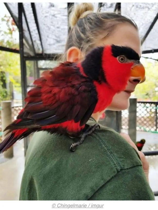 ภาพถ่ายพอดิบพอดีที่เจ้านกเกาะอยู่บนไหล และเธอหันมาในมุมที่ได้จังหวะพอดีทำให้เธอดูคล้ายกับมนุษย์นก
