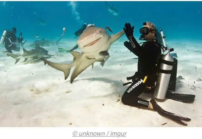 เมื่อนักดำน้ำลงไปยังใต้น้ำเราคาดหวังว่าได้เจอสิ่งสวยงามที่ทำให้เราประทับใจ แต่ครั้งนี้ เขาต้องประทับใจไม่มีลืมเมื่อเขาได้ถ่ายภาพแปะมือกับเจ้าปลาฉลาม และยังสามารถเก็บภาพนี้ไว้ได้ทันเวลาพอดีกว่าเจ้าฉลามจะว่ายน้ำจากไป