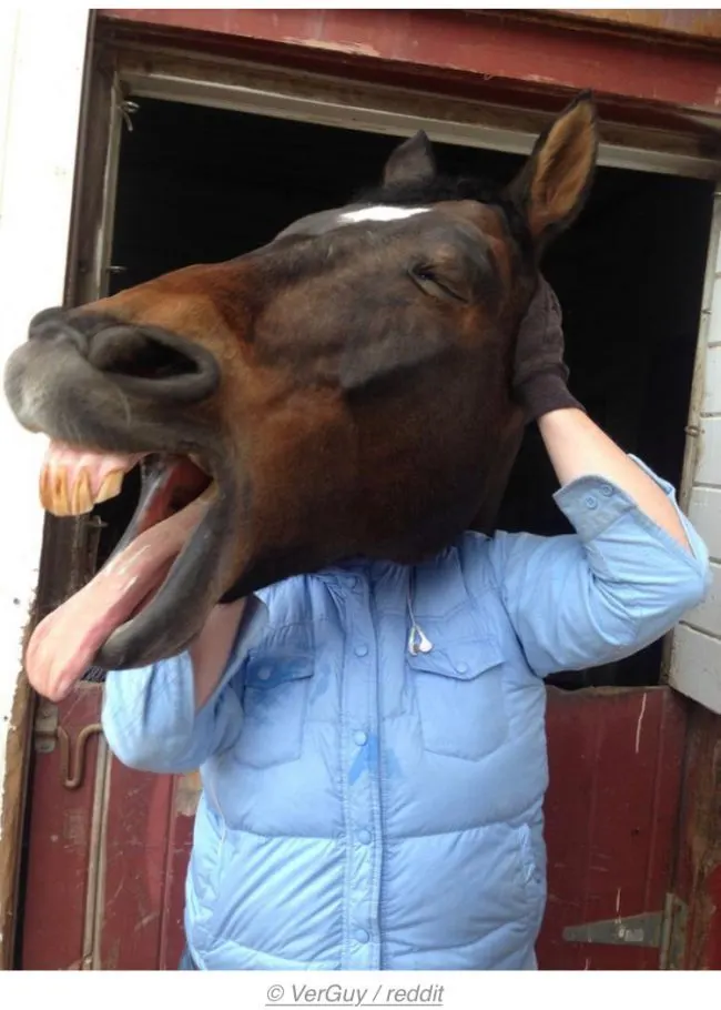 เราเคยรู้จักแต่แก้วหน้าม้า แต่นี้เป็นหนุ่มหน้าม้า จากการถ่ายภาพจังหวะที่ม้าโผล่หัวออกมาพอดี