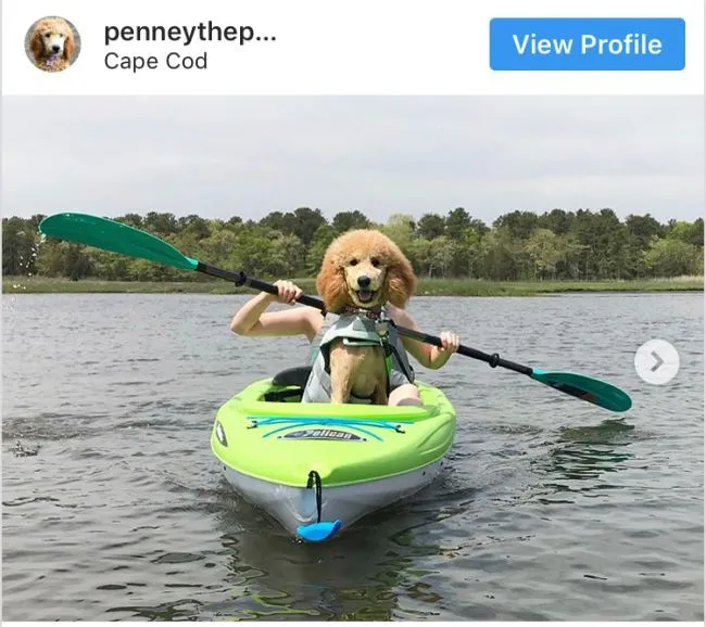 ภาพน้องหมาที่นั่งอยู่ในเรือคายัก ดูเท่ห์มาก จนได้ภาพเหมือนกับน้องหมากำลังพายเรือเอง