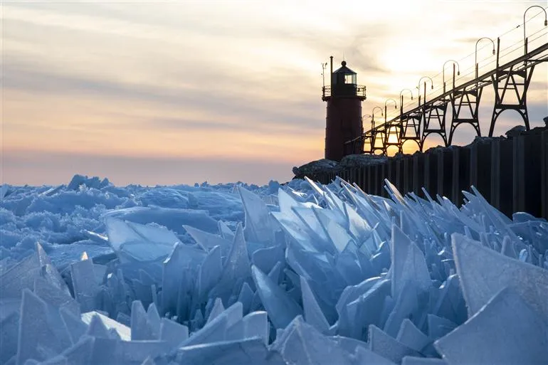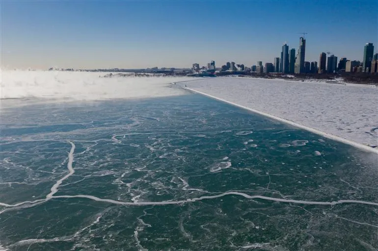 ชมความงามอันแสนประหลาด ทะเลสาบมิชิแกนที่เต็มไปด้วยแผ่นเศษแผ่นน้ำแข็ง